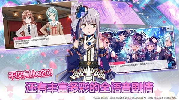 1、BanGDream拥有精致的二次元游戏画风,能让你沉浸在音乐美少女们的演奏表演之中;