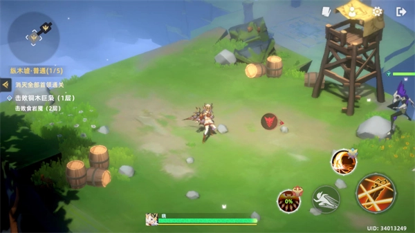 进入关卡后,左侧负责操控角色移动,右侧则对应角色的普通攻击、闪避以及技能释放功能。