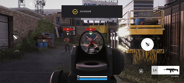16、手雷的使用方法为,点按住手雷按钮,松开后即可将手雷抛出。