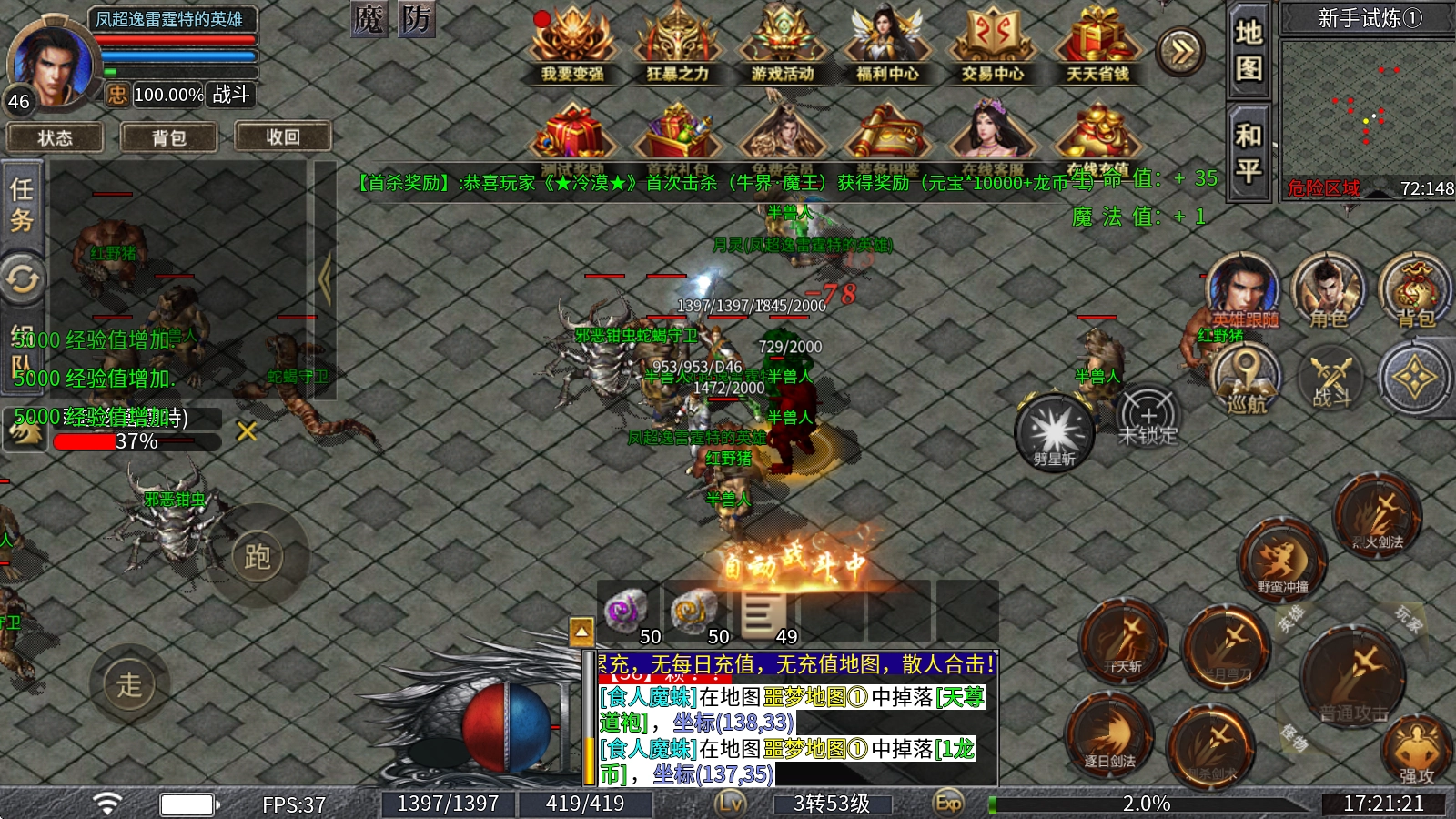 游戏内的冠名与赞助都能通过打怪获取,首充奖励也支持在线领取,还有个人首爆、个人首杀、杀怪福利等超多福利可以持续领取。
