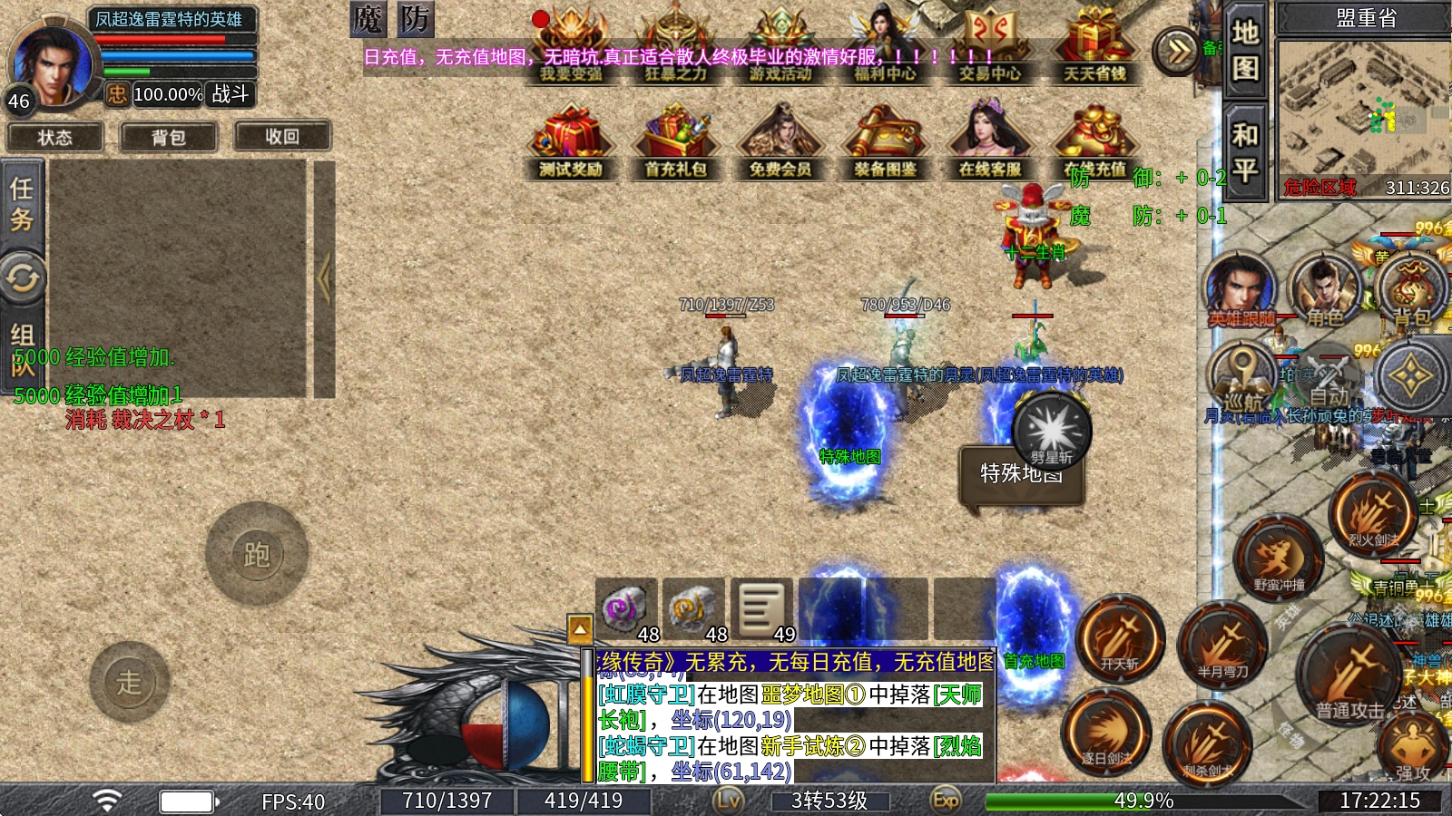 龙缘散人合击,185三职业合击版本,自带自动回收与自动拾取功能,每日登录即可免费领取丰厚奖励!游戏内首充福利可领取、赞助特权可通过打怪获取、冠名资格也能靠实力争夺,各类超爽特权轻松白嫖!个人首爆奖励、个人首杀福利、杀怪额外惊喜等海量福利送不停,助你轻松发育无压力!本服所有装备、材料及货币均可通过打怪获得,甚至小怪也能爆出终极装备,人人都有机会圆梦!