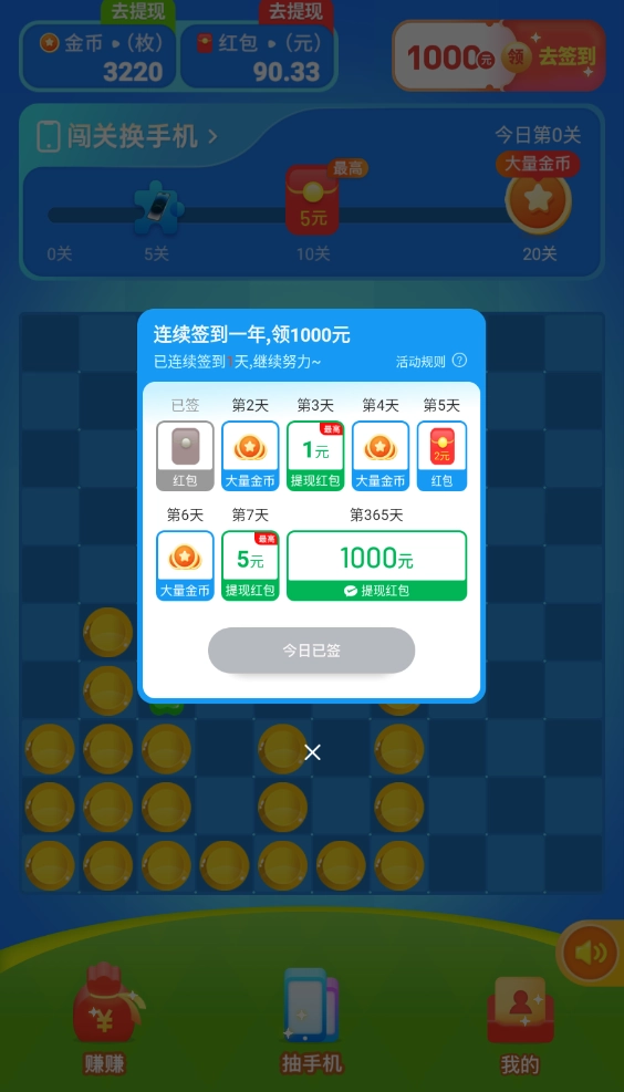每日签到可别忘了,坚持签几天就能领到一个小红包哦。
