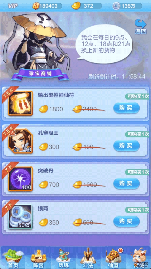 有时也会碰到云游商人打折卖各类游戏道具(9折的价格依旧不便宜)