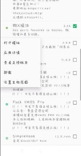 1. 微X模块安装完成后,不会在桌面生成图标,需在lsposed管理器中查看。