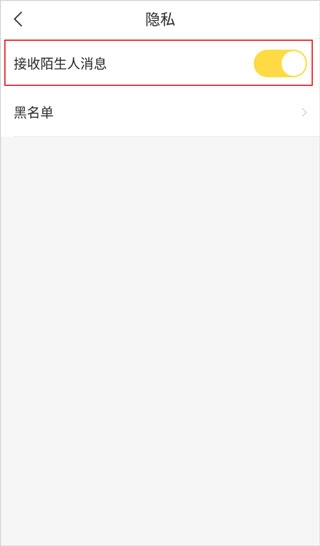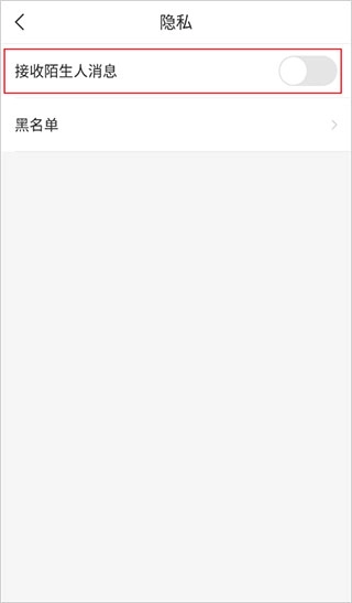 4、在隐私设置界面,点击“接收陌生人消息”后的圆点。