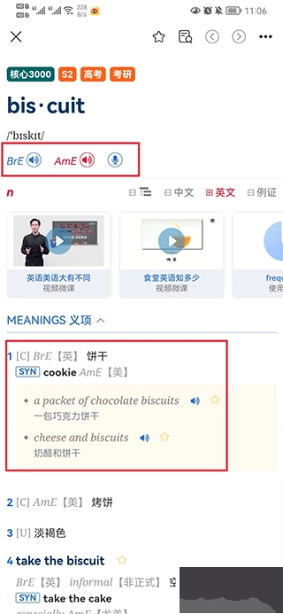 2、发音地道标准:每个单词都配备了英式和美式两种真人发音,能够满足不同学习者的习惯需求。