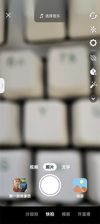 2、接着在作品编辑页面添加内容,既可以拍摄也可以上传。