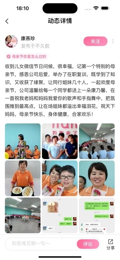 姐妹们可以把包含服务口号、个性化标签、认证信息等内容的个人电子名片分享给客户,以此展示丰富的个人背景资料。此外,通过精彩相册还能生动呈现服务细节、与宝宝共度的美好时光以及收到的表扬信等内容。