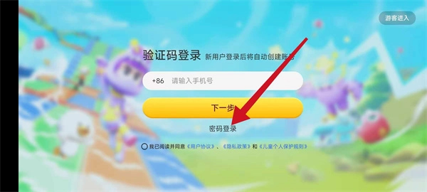 在登录界面中选择密码登录选项,即可进入账号密码登录的界面。