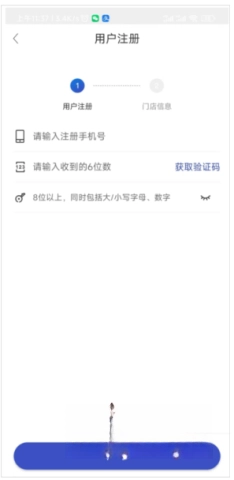 2、进入用户注册页面,填写您的手机号码、验证码和密码,之后点击“下一步”按钮。