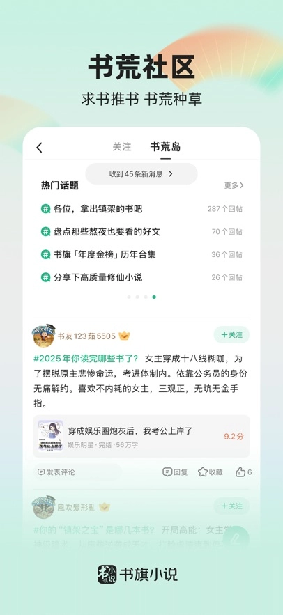 书旗小说阅读就像网文世界里的赛博说书楼,当免费阅读陷入同质化竞争的困境时,它凭借多角色听书引擎与书荒社区共生系统,搭建起了沉浸式的阅读生态。在这里,你不仅能看到《第一御兽师》里精彩的升级打怪情节,还有284位书友会为你分享他们珍藏的镇架好书。