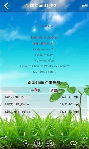 人教版小学英语课本有声版(3年级上册),供3年级上学期使用,具备单章朗读、单章循环、全书朗读、全书循环等功能。