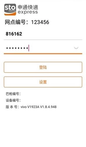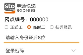 1、接着打开你的巴枪,在工号栏输入【000000】(六个0),在密码栏输入【123695】。