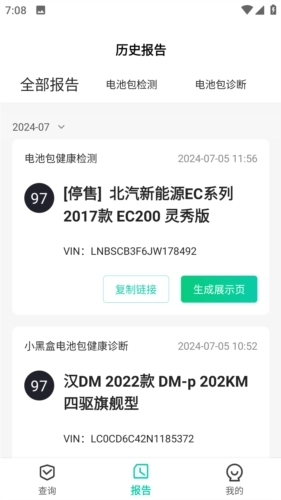 2、在软件里,用户能够查询并了解电池包的健康检测报告。