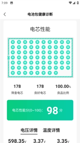 2.详尽检测报告:检测结束后,团团车将自动生成一份详细的电子报告。该报告不仅包含直观的电池健康评分,还涉及综合性能分析、电芯状态评估以及电池包寿命预估等关键信息。这些数据能够助力车主更深入地了解电池的现有状况,并为后续的保养或维修工作提供参考。