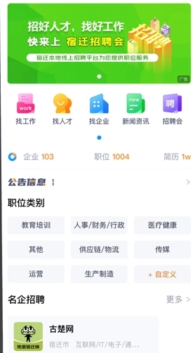 丰富资源:宿迁择缘人才网汇聚了大量宿迁本地的优质企业与人才,覆盖了各个行业领域,能够满足不同行业及岗位的多样化需求。