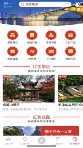 潇湘红借助人工智能、5G+视频应用、大数据等技术手段,为安粉丝游客打造涵盖18个红色景区的景点介绍、线路规划、全景直播、VR剧场、AR景观、智能导览等一站式、沉浸式的综合服务体验。