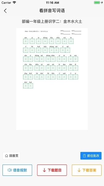 -错题批改:支持在线批改默写中的错误内容,还能将错题添加至错题本,方便后续统一复习与打印使用。