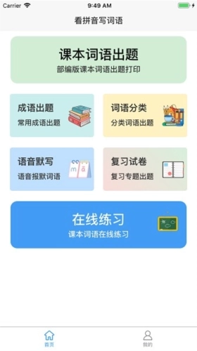 3、便捷的与打印:支持词语及成语的和打印,方便学生离线练习,也可作为家庭作业提交。