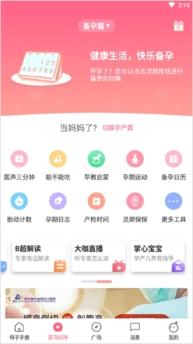 2.对首页布局进行优化,依据孕期的不同阶段,为用户推荐与之对应的宣教内容。