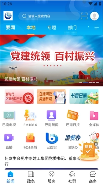 看巴南是重庆新华龙掌媒文化传播有限公司推出的综合平台,融合新闻资讯阅读与生活服务功能,专为巴南本地用户打造。用户通过它可及时获取巴南的实时新闻热点,平台构建了全面、新颖、具实效性与共享性的新闻分享环境。该平台整合了巴南当地各类新闻资源,方便用户一站式了解政务政策、实时新闻等内容,还提供直播、短视频、图文阅读等多种形式的服务。