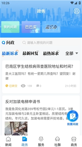 1、打开软件后,点击“问政”-“我要问政”