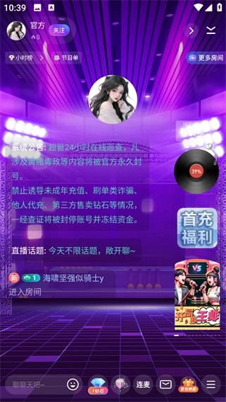 4、在这个平台上,你会看到系统推荐的各类房间,你可以加入这些房间,和其他用户进行互动交流。