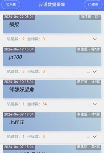 3、记录步道的实景情况,并且在完成采集后都能进行导入操作。