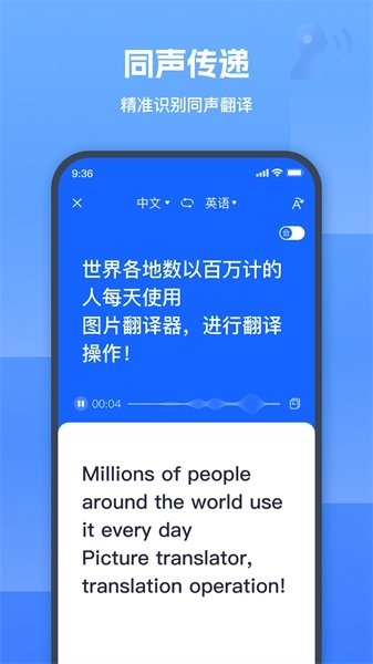 图片翻译器是一款由成都嗨动信息科技有限公司研发的多功能翻译软件,软件具备同声传译、音视频翻译、图片翻译、拍照翻译、文本翻译等功能。翻译准确率高,处理速度快!无论是学习外语、处理工作文档,还是出门旅行时皆能为用户提供便利,有效打破语言沟通障碍的问题。没有软件不会的,只有你想不到的,整体使用方法简单好上手,适合不同人群使用,行动不如心动,喜欢的就来试用一下吧!