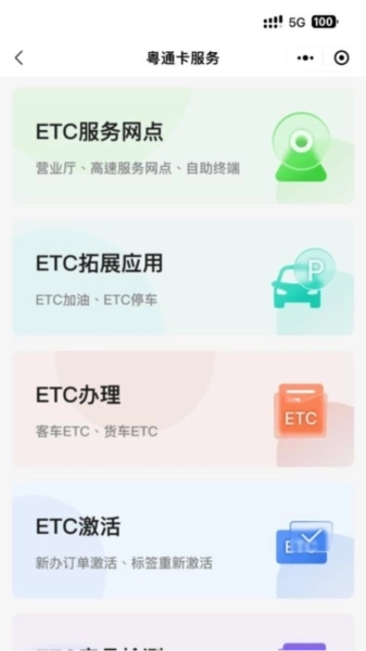 4、粤通卡服务:涵盖ETC办理、激活、加油及停车等功能,简化流程,方便用户。