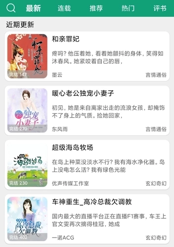 6、提供多种列表展示模式,汇聚各类易于阅读的小说资源,实时更新最新的小说内容,让你不错过每一处精彩。