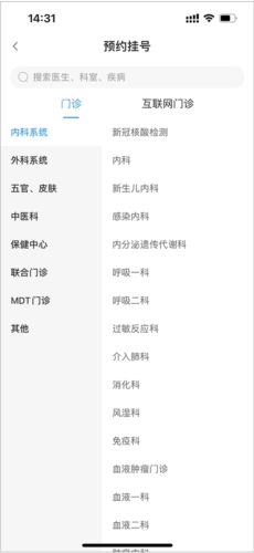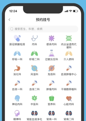 2、可选择自己希望就诊的医生、科室或疾病类型来完成挂号等操作。