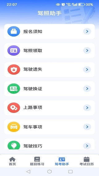 3、在驾考助手页面,可查看驾照领取等各类事项的处理办法。