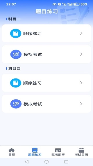 2、在题目练习页面,你可以找到科一、科四的训练题和模拟考试题,作答起来十分轻松。