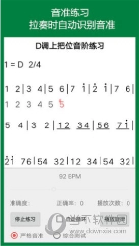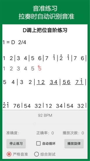3、音准练习:使用弦趣二胡进行音准练习时,软件会自动识别音准情况,提供三种不同的音准练习模式供选择。这三种模式各有其优势与不足,能够相互补充,满足不同的练习需求。