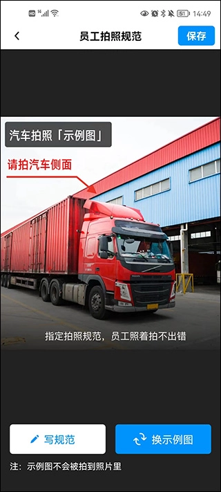 6、员工在拍摄过程中可放大查看规范细则,拍摄完成后示例模板会自动隐藏,不会对成片画面造成影响。