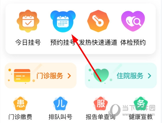 1、在主界面,我们点击屏幕上的“预约挂号”功能。