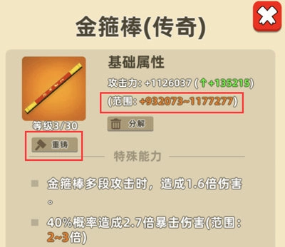 重铸后的装备属性具有随机性,有可能增强,也有可能减弱。要是属性下降了,我们能通过观看广告来消除惩罚。如此反复进行几次重铸操作,装备便能达到最高属性值啦!