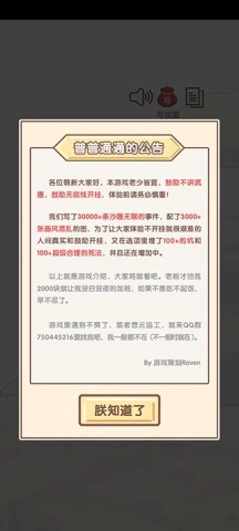游戏画面采用卡通风格,操作简单易懂。上百种结局等待玩家去探索,是成魔还是成仙,全在你的一念之间。此外,游戏精心设计了各种挑战与合理的死亡机制,为玩家的人生增添无限趣味。欢迎感兴趣的小伙伴尽情畅玩!1、本站首先提供的《我的人生游戏》,进入游戏后能够查看到游戏公告。