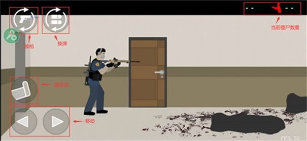 4、左下角为左右移动键,稍上方是腿部攻击键,左上角是换枪键,旁边则是换弹键。