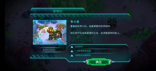 斗争者是个超级肉坦型近战单位,不仅皮糙肉厚,输出也不低,堪称所有机甲里最抗揍的存在——哪怕到了骨灰难度,它也照样能站稳脚跟。不过和前面两款机甲比起来,它的处境要稍显尴尬:作为移动极慢的近战单位,它得攀完科技才能解锁几个微型远程小机器人辅助输出,好在这些小家伙的输出还挺可观。另外它还有个超实用的天赋技能——挖矿,简直是资源囤积的“毒瘤”!我朋友就特别爱用斗争者,靠它能加速资源积累呢。