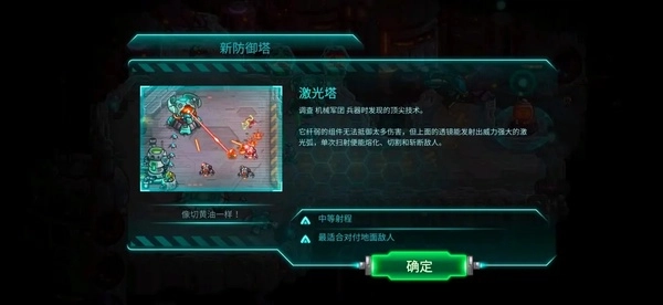 激光塔是防御塔系列里输出能力最强的存在,但同时也是最脆弱的一款。它的攻击范围介于导弹塔和机枪塔之间——比导弹塔短一些,却比机枪塔远。初始建造需要100矿,价格不算便宜,不过在本作设定中,激光武器拥有无视护甲的特性,这让它直接成为了机械星球的核心输出力量。 激光塔的升级方向有两个:三重射线和秒杀光束,升级总共需要100矿,算上初始成本合计200矿。三重射线属于范围伤害,输出相当可观,用来清理杂兵再合适不过;相比之下,秒杀光束就显得有些尴尬了——它经常会误打小型单位,白白浪费效果,而且冷却时间还很长。另外,激光塔对空的伤害偏低,这也算是它为数不多的缺点之一。