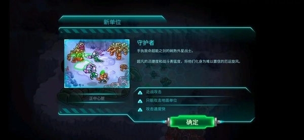 守卫者是超强的近战输出单位,拥有高攻速,能够无视护甲,还自带突进技能,进攻能力属于一流水平。攀出科技后,它的生存能力尚可,要是有外交官辅助,战斗力会变得极其强悍。不过它的缺点是无法对空。