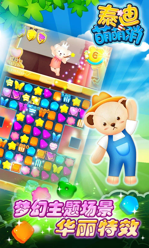 5、绚烂夺目的消除特效,让人沉浸在缤纷绮丽的梦幻天地。可爱的泰迪熊将陪伴您共度轻松愉悦的休闲时光~