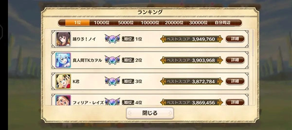 竞技场分为普通场和EX场两种模式:普通场设有排行榜,EX场则无排行榜机制。两种场次每天各可挑战3次,合计每日共有6次挑战机会。参与挑战能获取竞技场币,还能根据累计分数领取对应奖励;若在普通场排行榜上名列前茅,还可获得额外奖励。需要特别提醒的是,请勿使用作弊——我曾添加过不少登上榜一的“神仙”玩家,发现他们几乎都是在排行榜结算后就再也没有上线,推测已被官方封号处理。 关于竞技场的队伍搭配问题,大家可以访问素晴日服的wiki网站(https://gamewith.jp/konosubafd/)查看队伍推荐,该网站同步日服的游戏进度。值得一提的是,日服排行榜前十的玩家中,有一位是哔哩哔哩的UP主,他的队伍配置具有较高参考价值,其UID为567912455;此外,也可以通过查看排行榜1至30000名玩家的队伍配置,获取更多搭配思路。