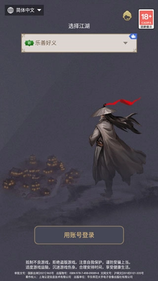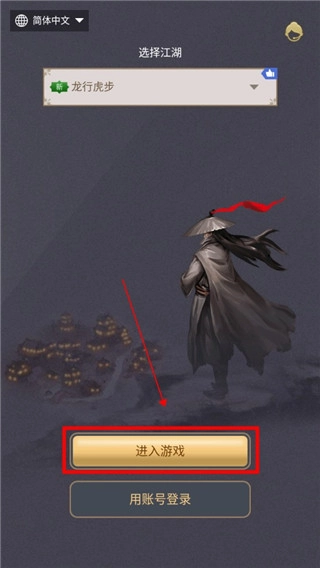 打开这就是江湖,选择游戏服务器,点击账号登录;