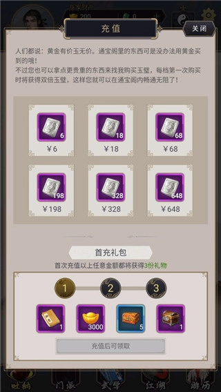依次点击门派里的当值长老、江湖板块下的百晓生居、通宝阁、庆余堂与丰泽坊,即可解锁大侠之路对应的章节内容。在庆余堂中,可选购绿色装备寒玉带和九宫坠并进行穿戴(若有需求也能选择其他装备)。之后前往地图界面的关中区域,通过直接击败boss或清空整张地图的方式完成挑战,找到蓝色出口返回,此时便能集齐大侠之路的前十章,获取秘笈归元心经,该秘笈可使内力修炼速度提升53点/12秒。