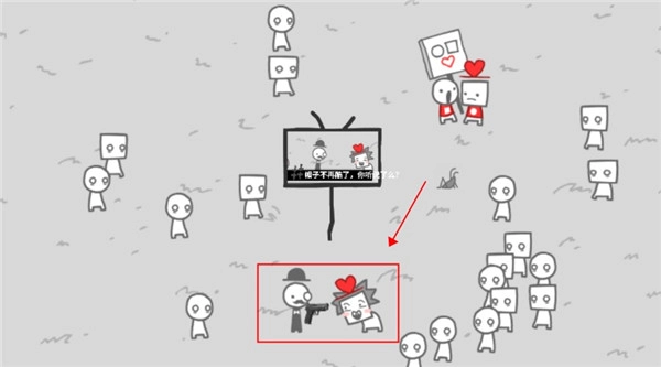 8、人们吵起来的时候,那对情侣会出现呼吁大家不要争吵,要爱好和平,但没人理他,