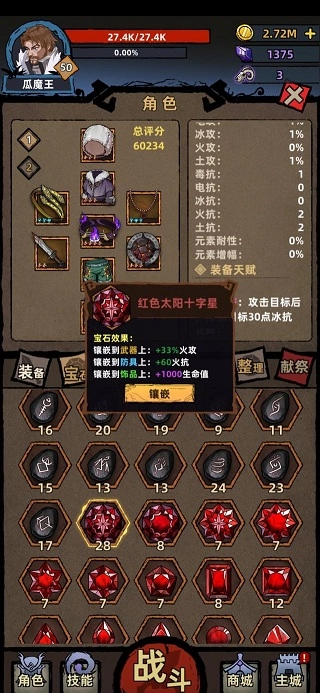 第一条原则:始终以快速推进关卡为核心目标,尽可能快地攻克下一关,以获取更高级别的装备,同时也要全力加快角色升级速度。因此,像经验增幅、幸运这类属性,要尽可能多地去提升;宝石方面,也应多选择带有经验增幅和幸运效果的,并镶嵌到饰品上。