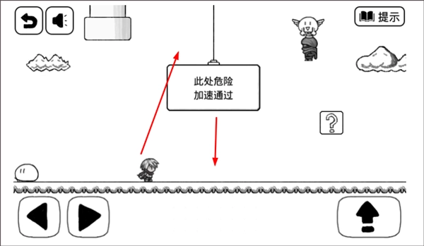 2、注意到跳跃按钮跑到右上角去啦,跳过去,取得翅膀。
